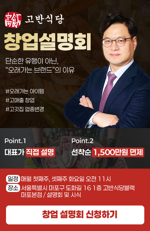 '고반식당'은 (이하 '회사'는) 고객님의 개인정보를 중요시하며, "정보통신망 이용촉진 및 정보보호"에 관한 법률을 준수하고 있습니다.